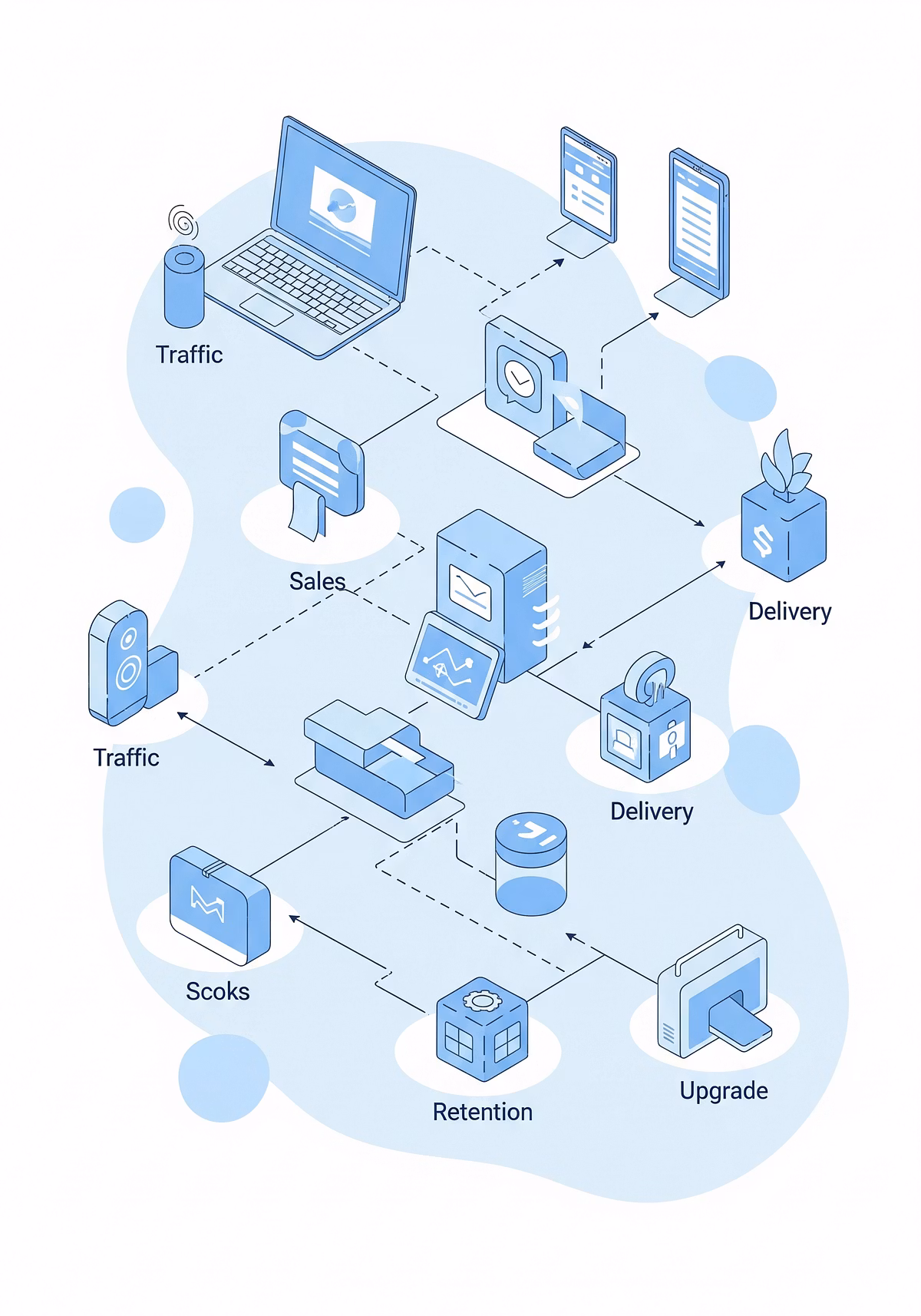 Totul este gândit ca funnel și construit să funcționeze din prima zi: trafic → captare → follow-up → încasare → livrare.